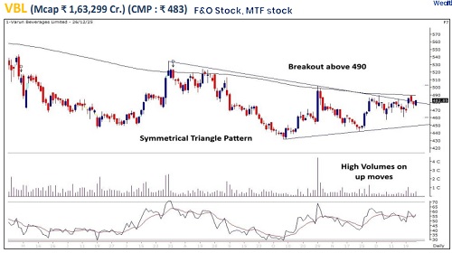 * “Symmetrical Triangle” Pattern formation, Breakout above 490