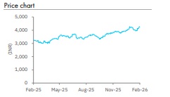 Retain Buy with a higher TP of INR 5,000: We increase our revenue estimates by 8% for FY26 and 9.5% each in FY27 & FY28 to incorporate Damas in the international business and higher gold prices. Hence, we raise our EPS by 11.8% for FY26E, 13.9% for FY27E and 13.5% for FY28E. We retain Buy with a higher TP of INR 5,000 from INR 4,540 on 60x (unchanged) December 2027E P/E.