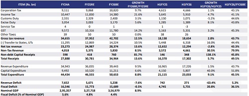 * 9% y/y rise in total expenditure was led by 40% rise in capex in H1FY26, with rising pace of spends on roads and defence
