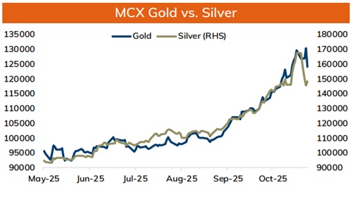 * Spot gold is likely to face hurdle near $4180 and move lower towards $4050. Only a move above $4180 it would turn bullish again. MCX Gold December is expected to face resistance at Rs.125,500 level and move back towards Rs.122,000 level.