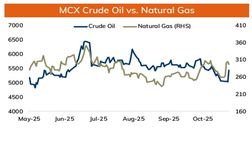 * MCX Crude oil November is likely to hold the support near Rs.5260 and move towards Rs.5480. A strong put base near $60 indicates NYMEX crude to hold support.