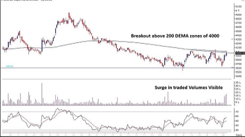 * Breakout above 200 DEMA level of 4000.
