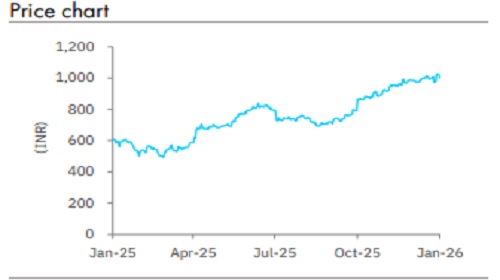 We believe Q3 performance had stronger undertones, and sustained momentum will be crucial to drive further re -rating. Given better -than -expected growth , we raise our target multiple to 2.7x ( from 2.3x) , which with roll forward to December ’27E leads to raised TP of INR 955 ( from INR 786). That said, the stock has rallied sharply (15% in p ast three months), suggesting most positives to be priced in and limited/no room for disappointment. Thus, we maintain Reduce.
