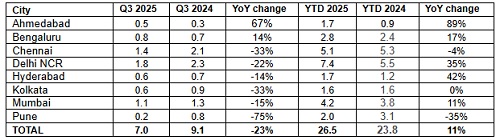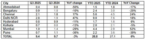 However, following one of the best-performing quarters on record in Q2 2025, demand moderated in the third quarter to 7.0 million sq ft, reflecting a 23% YoY decline. Nevertheless, the ongoing festive season and spur in warehousing requirements on account of higher e-commerce and electronics sales in the last quarter can push the demand in the last quarter.