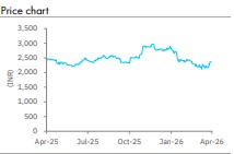 Asian Paints' (APNT IN) has endured prolonged underperformance due to two key headwinds: market share erosion and muted revenue growth. Its market share currently has stabilized at ~56% through 9MFY26, and we expect this to hold in Q4FY26. Industry revenue growth should accelerate to 15%+ in FY27E, fueled by price hikes of 6-8% across peers. Strong Summer demand, a late Diwali, and more wedding days could bolster volume. Near-term margin pressure persists but improving growth and market share underpin our stance upgrade. We upgrade to Accumulate with a higher TP of INR 2,700.