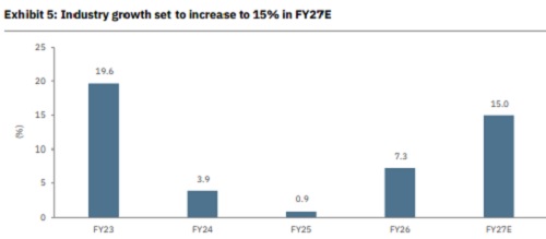 Market share stabilizes with revenue momentum: APNT’s market share fell to ~56% in FY26 from ~62% in FY24 but has stabilized in the past 2–3 quarters – a meaningful sign its corrective measures are working. The company has outperformed large peers on revenue growth for two consecutive quarters, ending a six-quarter slump. FY25 suffered from scheme cuts and inventory destocking. In FY26, APNT mirrored the industry’s subdued trends. In FY27E, we expect revenue growth to improve to 15%, driven by pricing aggression, industry tailwinds, and volume recovery.