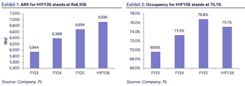 We met the management of Brigade Hotel Ventures Ltd (BRIGHOTE IN) to derive insights into the company’s expansion plan, which entails doubling of inventory by FY30E. BRIGHOTE IN is the 2nd largest owner & developer of chain affiliated hotels in South India. It has a portfolio of 9 hotels comprising 1,604 keys that are managed by global brands like Marriott International, Accor and IHG. The expansion plan entails addition of 1,700 keys by FY30E at an estimated capex of Rs36bn. The expansion is likely to be funded via internal accruals and debt. Post IPO, the balance sheet has become lean with debt/cash balance of Rs2bn/Rs3bn as of 1HFY26. However, given the plan to add 45/586 keys in FY27E/FY28E, leverage is likely to increase in future. Over FY23-25, BRIGHOTE IN’s revenue/EBITDA has registered a CAGR of 15%/27%. We believe execution of the plan to double the inventory in 5 years, will be keenly watched from here on. The stock trades at 12x/10x based on FY27E/FY28E consensus EBITDA. Not Rated.