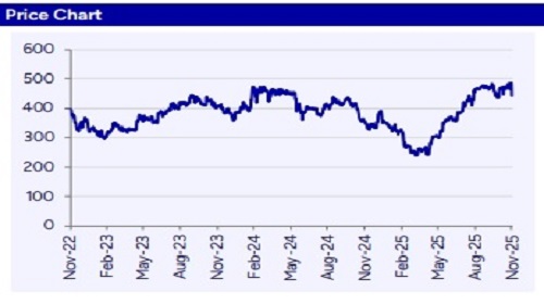 Adjusting for the integration cost charge of Rs900mn arising from acquisition of E-com express, DELHIVER IN’s operating performance was better than our estimate with EBITDA margin of 6.2% (PLe 5.9%). Improvement was driven by turn-around in SCS division with service EBITDA margin of 12.9%. However, service EBITDA margin of B2C parcel division expanded by just 20bps YoY to 15.1% and operating leverage benefit was not evident as yields were down 6.7% YoY to Rs65.5 given average weight per parcel on E-com’s network is comparatively lower. In addition, PTL division’s service EBITDA margin also witnessed a sequential dip to 8.5% as fixed cost absorption was weak amid delay in shipments post changes in GST rates. Nonetheless, service EBITDA margin of B2C parcel division is expected to revert to ~16-18% mark by end of FY26E. PTL division’s service EBITDA margin is also expected to mimic B2C parcel division over the next 2 years. Overall, we expect sales CAGR of 14% over the next 3 years with EBITDA margin of 5.1%/9.4%/10.2% in FY26E/FY27E/FY28E and maintain ACCUMULATE with a TP of Rs489 (38x SepFY27E EBITDA; no change in target multiple).