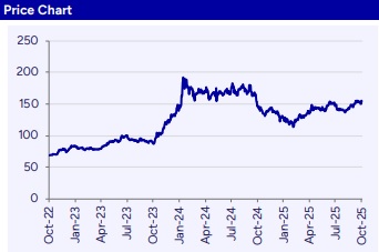 Indian Oil Corporation (IOCL) reported refining throughput of 17.6mmt with reported/core GRM of USD10.7/8.9/bbl, led by improvement in product cracks, especially HSD spreads. Inventory gain stood at USD1.8/bbl vs a loss of USD4.8/bbl QoQ. Domestic marketing sales volume stood at 20.19mmt, up 3.4% YoY. Implied gross marketing margin (GMM) stood at Rs7.1/lit vs Rs8.7/5.5 in Q1FY26/Q2FY25. Reported standalone EBITDA was above cons at Rs145.8bn (Ple Rs117.9bn, BBGe Rs133.9bn, Q1FY26/Q2FY25 – Rs126.1/37.7bn), while in H1FY26 it stood at Rs271.9bn vs Rs124.1bn in H1FY25. Standalone PAT came in at Rs76.1bn (Ple Rs52.6bn, BBGe Rs59.4bn) vs. Rs56.9bn/1.8bn in Q1FY26/Q2FY25, leading to a PAT of Rs133.0bn in H1FY26 vs Rs28.2bn in H1FY25. Petrochem EBIT stood at Rs1.6bn, vs a loss of Rs. -10mn in Q1FY26. Co. will receive LPG under-recoveries compensation for LPG sales of Rs144.9bn in 12 monthly instalments from Nov’25 onwards. We build in a GRM of USD7.2/6.0/bbl and a blended GMM of Rs4.9/4.4/lit for FY27/28E. Due to continued momentum in products cracks and expected compensation of LPG under-recoveries, we reiterate our ‘Accumulate’ rating on the stock with a TP of Rs166 based on 1.0x FY27/FY28E P/BV.