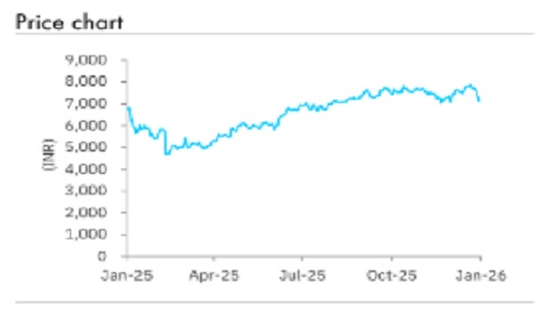 Reiterate Accumulate with a higher TP of INR 8,180: We raise our FY27E EPS by 2% due to