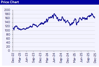 Management expects NINL to be commissioned in 3-4 years, while it will incrementally focus on higher-margin downstream finished steel products in the interim. Mgmt. also reiterated that current global steel prices are unsustainable and expect it to improve gradually. We expect fast tracking of NINL capex to maintain market share in fast growing domestic market as TATA would struggle for capacities post FY28E. All the growth projects (ex-MH est ~Rs450-500bn as per our caln) would aid volume growth only from FY29E. Existing 26.6mtpa Indian capacities and upcoming 0.8mtpa Ludhiana EAF would facilitate volume growth till FY28E. We cut our estimates by 2-3% on account of current weakness in steel pricing. At CMP, the stock is trading at 6.4x/5.8x EV of FY27/28E EBITDA. We maintain ‘Accumulate’ rating with revised TP of Rs188 (Rs196 earlier) valuing at 7x EV of Sep’27E TSI EBITDA.