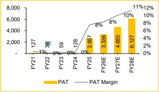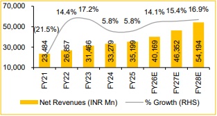 We expect 11.8% CAGR for revenues FY25-FY28E