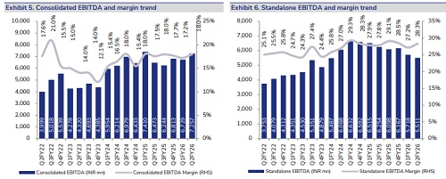* 2QFY26 – Consolidated margin above estimates: BHFC’s stand. net sales stood at INR c.19bn (-13% YoY, -8% QoQ). Total tonnage stood at c.56.4kt (-12% YoY, -9% QoQ). Realisation decreased by 2% YoY (+1% QoQ). Reported stand. EBITDA margin was 28.3% (+50bps YoY, +110bps QoQ). Consolidated revenue stood at INR 40bn (+9% YoY, +3% QoQ), 7% above JMFe. EBITDA margin stood at 18% (+40bps YoY, +80bps QoQ), 150bps above JMFe primarily due to strong execution in defence. Consol. EBITDA stood at INR 7.3bn (+12%YoY, +8% QoQ), 17% above JMFe. Consol. PAT stood at INR c. 3bn (+23% YoY, +5% QoQ), 5% above JMFe.