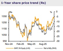 1) The mgmt highlighted that Q2 marked the trough of the current downcycle; Q3 is expected to see a similar trend, while Q4 should see an uptick as global destocking eases and US demand stabilizes. 2) India MHCV demand expected to be flat for FY26, while tractor demand remains strong; defense, aerospace to be key growth drivers over FY27– 28. 3) BHFC reiterated that the US CV market slowdown continues to weigh on exports, but demand normalization is likely by early-FY27. 3) The defense order book stood at Rs110bn, excl a Rs14bn carbine order (execution to begin in 9-12M; full execution over 4Y). 4) Defense revenue recognition typically lags by 6–9M post-order, as FOMP (final order manufacturing protocol) is required before deliveries start. 5) The recent order worth Rs2.5bn, from the Navy for underwater and unmanned marine systems, was won via Kalyani Strategic Systems (KSSL), a 100% subsidiary, and will be delivered in a year. 6) ATAGS (artillery gun) execution will start from CY26, ramping up over 3Y; FY27 defense revenue expected to be meaningfully higher YoY. 7) Aerospace revenue expected to grow from Rs2.5bn in FY25 to Rs3.5bn in FY26, with strong 3-4Y visibility ahead, driven by new engine and structural component programs. 8) For the American Axles subsidiary, near-term focus (Horizon 1) is on stabilization/better profitability; Horizon 2 to focus on aggressive growth in LCV/ICV and OFH applications in India. 9) BHFC noted that tariff cost rose to Rs240mn in Q2 (Q1: Rs140mn) due to sharing US export duties.