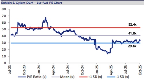 * Focus on non-A&D businesses and foray into auto to be key drivers of growth: We believe that Cyient DLM’s ramp up in the non-A&D (aerospace and defence) segments will be key drivers of growth hereon. With the acquisition of Altek in FY25, Cyient DLM strengthened its hold over the Industrial and MedTech verticals. While the Company was present in these verticals before the acquisition as well, the ramp up was not too exciting. Further, the Company has gotten active in the automotive segment, especially the electric vehicle (EV) space as well. Herein, initially, it intends to focus on products required in setting up EV infrastructure. The Company also onboarded a new client in this segment in 2Q, wherein it will supply subassemblies that go into the EV charging systems. At the same time, Cyient DLM continues working on several other potential customers within the automotive segment, which are expected to become key accounts over the next several quarters.