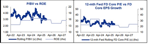 HFFC’s connector model, strong tech infrastructure, and prudent geographic focus, coupled with a modest ~17% non-housing exposure, position it on a lower-risk footing amid an industry-wide uptick in asset quality stress. The recent capital raising will subdue return ratios in the near term; however, we believe the same will normalize by mid-FY27F. We believe a 15% correction in the last around four months makes the risk-reward ratio attractive, and maintain our ADD rating on HFFC with a stable target price of Rs1,650, valuing it at 3.6x FY27F BV. Downside risks: A sharp fall in NIM and asset quality stress.
