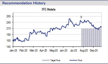 ITC Hotels’ (ITCH) performance was ahead of our expectation, driven by better-than-expected occupancy in its standalone business (72% vs. our estimates of c.70%). Consol. revenue was inline and grew 8% YoY, aided by 11% growth in RevPAR; F&B revenue grew slower at 5% YoY. Despite seasonal softness and the negative impact of heavy monsoon rains on the overall travel sentiment, EBITDA grew 16% YoY to INR 2.5bn (vs. JMFe: INR 2.3bn, 8% beat), as EBITDA margin expanded by ~200bps to 29.3% (JMFe: c.27%). Healthy growth in room rates, higher fee income and cost interventions led to this expansion in margin. ITC Ratnadipa witnessed 1.6x YoY growth in RevPAR and was EBITDA positive during 2QFY26. ITCH announced the launch of a new upper upscale brand: “Epiq Collection”, with two inaugural assets – an under-development, owned hotel in Puri and a managed property in Tirupati. Going forward, we expect ITCH to report 11%/14% CAGR in revenue and EBITDA over FY25-28E aided by c.7% growth in ADR and ramp-up of the Sri Lanka asset. We roll forward to Mar’27E with a new TP of INR 235 and upgrade the stock to ADD from REDUCE.