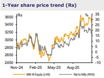 M&M delivered a strong Q2 operationally, with revenue up 22% YoY and the EBITDA margin improving to 15.1% (up ~41/110bps YoY/QoQ), led by a better mix and lower opex. The Auto segment’s EBIT margin rose by 25bps QoQ to 9.2% (though down by 35bps YoY), while that of the Farm segment came flattish QoQ at 19.7% (although up by 220bps YoY). The management remains constructive on GST cuts being a structural demand enabler across PVs/LCVs. The FY26 growth guidance for SUVs is unchanged (mid-high teens); the mgmt has upped its FY26 growth guidance for tractors to ~10-12% (~5-7% earlier), implying largely flattish volumes for the rest of FY26. We raise FY26E/27E/28E EPS by ~10%/14%/15%, respectively, to factor in benefit from GST-cut linked demand improvement. We reiterate ADD, with a revised SOTP-based TP of Rs3,650 (vs Rs3,200 earlier; a 14% upgrade), at 25x Sep-27E core EPS.
