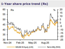 MSUMI logged a strong Q2, with revenue up 19% YoY (11% QoQ) to Rs24.9bn, outpacing PV industry’s 4% growth on higher content/vehicle and model launches. EBITDA was also up 12% YoY to Rs2.8bn, with the EBITDAM expanding by 30bps QoQ to 10.1% despite RM pressures and start-up costs from greenfield expansions; excluding this, EBITDAM was stable YoY at 12.7% (up 90bps QoQ). MSUMI’s revenue growth is accelerating (4th consecutive quarter of growth), aided by order wins and market share gains via entry into newer models. EV’s revenue share rose to 6.7% (vs 5.4/4% in the past 2 quarters), which would aid MSUMI’s revenue, given the higher content per vehicle; the management also reiterated that the EV mix remains marginneutral due to embedded content economics. While we cut our FY26E EPS by 3% to reflect the gradual ramp-up in greenfield expansions, we raise FY27E/28E by ~5/8% and revise our TP to Rs50 (vs Rs40), at 30x Sep-27E PER (vs 28x earlier; rolled forward), on a stronger growth outlook and benefits from the EV shift (higher content per vehicle). We, thus, maintain ADD on the stock.