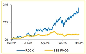 RDCK reported a sharp increase in Popular segment volumes. However, as the base effect kicks in, growth in this segment is likely to slow down. Further, RDCK has managed to sustain its P&A momentum with 3 leading brands. Thus, we revise our FY26E estimates upwards by 2%, while maintaining FY27E/FY28E projection. We, therefore, maintain our TP of INR 3,340 using the DCF approach; this implies FY27E/FY28E PE of ~62x/48x with an “ADD” rating.