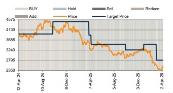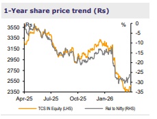 TCS’s Q4 operating performance was in line with our expectation. Revenue grew 1.5% QoQ (1.2% CC) to USD7.6bn, marking the third consecutive quarter of sequential growth. EBITM expanded by 10bps QoQ to 25.2%, with gains from higher realizations and currency largely reinvested into capability building. Deal wins remained strong at USD12bn (book-to-bill of 1.6x; ~45% new), including 3 mega deals – M&S, a telco in the UK, and an American healthcare and pharmacy retailer. AI revenue grew to USD575mn (28% QoQ; 7.5% of revenue), led by accelerated deployments across industries. TCS reported improvement across client buckets in Q4, indicating reduced revenue leakage, incremental discretionary spending, early signs of stabilization, and growth returning to mid-sized and large accounts. The management expects FY27 to see a return to normal seasonality, with stronger sequential growth in H1 than in H2. It remains confident on sustaining momentum, supported by strong client engagement, a healthy order book, and strategic investments in AI and partnerships, while staying mindful of macro and geopolitical risks. TCS aspires to be the largest AI-led tech services firm by gaining market share through AI-led renewals, vendor consolidation, and cost optimization, evolving into a full-stack AI player and creating new revenue streams (such as AI infra build-out). We raise FY26-28E earnings marginally, factoring in Q4 performance. We retain ADD and lift TP by ~5% to Rs2,950 (from Rs2,800), at 18x Mar-28E EPS.