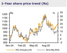 TRCL reported standalone EBITDA of Rs3.9bn, in line with our estimate. Unseasonal rainfall and soft demand till the run-up to the lower GST rate led to flat YoY cement volumes. Cement realization moderated by ~2% QoQ (in line with that of the industry) likely due to higher a) contribution of OPC (35% in Q2 vs 31% QoQ) and b) non-trade dispatches (31% in Q2 vs 30% QoQ). Inflation in raw material costs was offset by higher green power consumption and lower fuel prices, resulting in unit (RM+P&F) cost increasing by a meagre ~1%. Absolute fixed costs increased 12%/6% YoY/QoQ due to overhead cost-built up in the construction chemical segment. TRCL reported EBITDA/t of Rs850, up 22% YoY. PAT stood at Rs743mn, viz ~3x YoY.