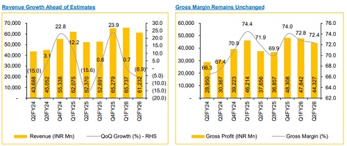 * Revenue grew 16.9% YoY but declined 6.9% QoQ to INR 61,232 Mn (vs. CIE estimate: INR 58,013 Mn).