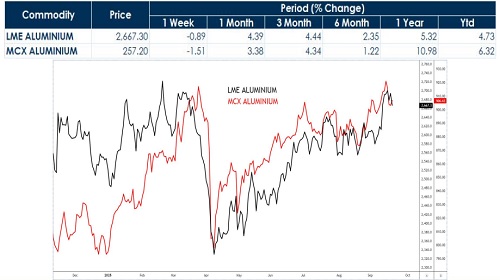 * Aluminium climbed above 4% in a month tracking LME above $2,715, hitting a near six-month high and SHFE prices above 21100, hitting 10-month high.