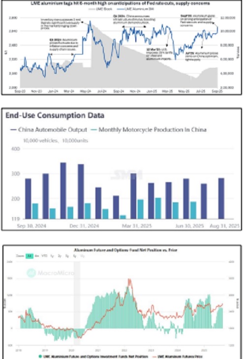 China’s aluminium end-use demand showed mixed signals across the automobile and motorcycle sectors. Automobile output (blue bars) remained the dominant driver but displayed volatility: peaking near year-end 2024 before softening in March 2025, followed by moderate recovery through August 2025. Motorcycle production (teal bars), though much smaller in scale, showed steadier momentum, with visible gains around March 2025 but easing again by mid-year. The data suggests that while auto output remains the primary consumer of aluminium, demand growth is uneven, reflecting broader economic headwinds and policy adjustments.