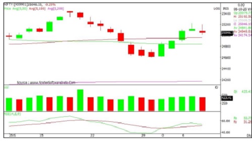 Action: Nifty has an immediate Resistance at 25160 and on a decisive close above expect a rise to 25260-25340 levels..