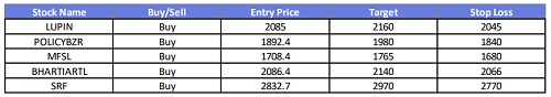 * Nifty is expected to open on a gap down note and likely to witness range bound move during the day.