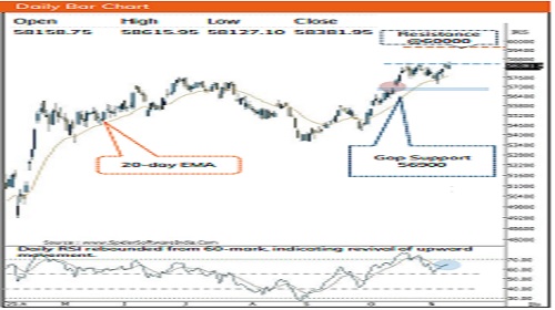 * Momentum indicators such as the RSI continue to sustain above the 60 level on both weekly and monthly timeframes, maintaining a positive medium-term bias. Hence, focus should be on accumulating quality stocks on dips backed by strong earnings as immediate support is placed near 56,900, corresponding to the 38.2% retracement of the ongoing advance (54,226–58,577).