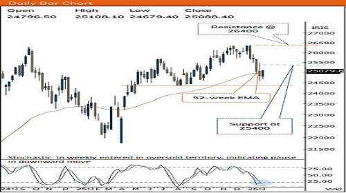 * Index opened on a flat note and witnessed initial dip; however supportive efforts emerged near previous session low. The daily price action formed a inside bar oscillating within previous session range, indicating breather.
