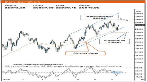 * In the coming session index is likely to witness gap down opening tracking subdued global cues. Going ahead, we expect index to resolve higher and gradually challenge the All Time high of ~26300 in coming weeks. A decisive close above 26,300 could recharge the rally and set the stage for 26,800 in the coming weeks. Hence, focus should be on accumulating quality stocks on dips as key support is placed at 25700