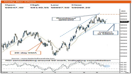 * Levels- After a gap up opening, dip towards previous sessions close should be used as buying opportunity in the range of 59240- 59300