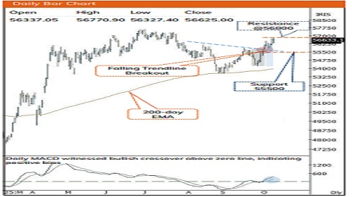 * Key point to highlight is that index has maintained its higher bottom formation for third-consecutive session. Index continues to hold above key moving averages and its prior gap-up zone of 55,700, indicating strong underlying momentum and resilience amid global uncertainties. The banking internals like private banks, PSU Banks, NBFC’s are showing structural improvement that makes us believe, Bank Nifty is gearing up to challenge it’s All Time high of 57600 in coming months. Therefore, any dip from current levels should be seen as a buying opportunity, with immediate support placed near 55,500, representing the 50% retracement of the ongoing up move (54,226-56,770).