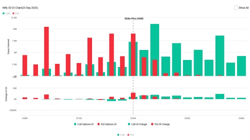 * Call writing is seen at 25400 then 25500 strike while Put writing is seen at 25400 then 25450 strike.