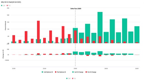 * Call writing is seen at 26000 then 25900 strike while Put writing is seen at 25700 then 25750 strike.