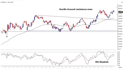 Nifty immediate support is at 25800 then 25700 zones while resistance at 26000 then 26100 zones. Now it has to hold above 25800 zones for an up move towards 26000 then 26100 zones while supports can be seen at 25800 then 25700 zones.