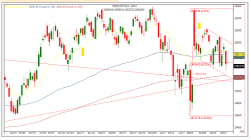 * Technically, the Nifty has once again retested the crucial support near the 25,400 zone, and a decisive break below this level could trigger the next leg of the decline towards 25,245, which coincides with the 200 DEMA, followed by a major support area around 25,100, marked by a gap on the daily chart.