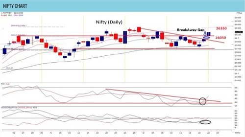 Breakaway gap, RSI strong; above 26050 targets 2633026000 support -Tradebulls Securities Pvt Ltd