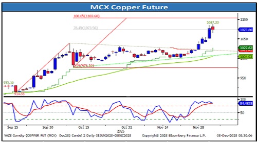 * Intraday Trading Strategy: Buy Copper Dec Fut at 1073-1074 SL 1064.8 Target 1084/1087