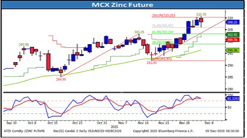 * Intraday Trading Strategy: Buy Zinc Dec Fut at 308.0-308.50 SL 306.8 Target 310.8/312.0.