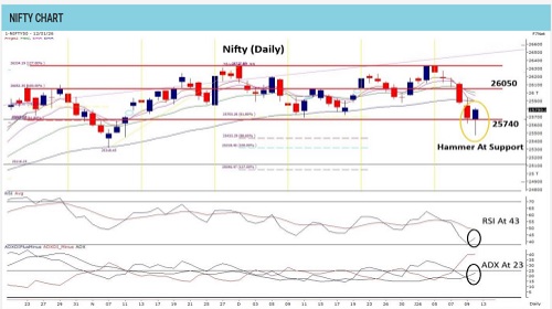 Bullish hammer from 25430 hints rebound; trade range 25430–26050 -Tradebulls Securities Pvt Ltd