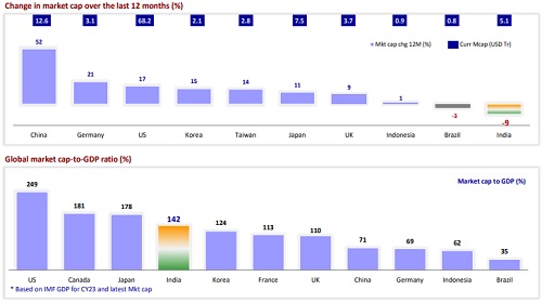 * Barring India and Brazil, all major key global markets have witnessed a rise in market cap over the last 12 months.