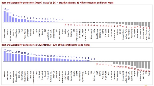 Breadth adverse in Aug’25, with 29 Nifty stocks closing lower MoM