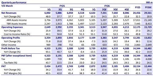 * ARR and TBR incomes are expected to rise in 2QFY26.