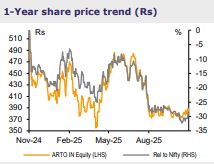 The management re-affirmed its FY28 EBITDA guidance of Rs18-22bn, led by costoptimization measures (renewable power, yield improvement), ramp-up of existing capacities, and sequential commissioning of MPPs and various blocks at Zone-IV. Aarti spent ~Rs5.9bn on capex in H1 and expects Rs10bn of capex in the year. There will be no substantial capex in FY27-28. The company expects the debt/EBITDA ratio to improve, going forward. We bake in the lower-end of FY28 EBITDA guidance, to factor in volatility in the energy business. Accordingly, we have kept our estimates unchanged.