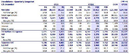 * We expect margins to contract by ~430bp YoY due to QCO compliance forcing higher-cost imports, along with forex volatility and pricing pressure in motors.