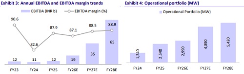 * The company has continued to execute well and remains on track to scale up its installed capacity to an estimated ~5.4GW by FY28. This is expected to drive an EBITDA CAGR of 74% over FY25-28.